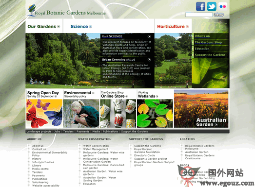 RBG:墨尔本皇家植物园里绿色成荫,鸟语花香,不但是墨尔本市民休闲的天堂,而且也吸引了大批的海外游客来这里观光游览。