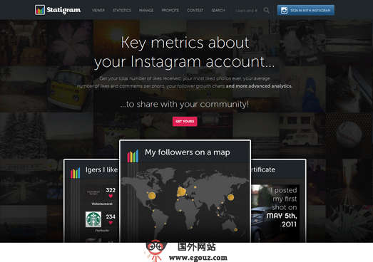 大家对国外的这个 社区肯定不会陌生,很多企业都把这个平台作为企业宣传的一个重要工具,也有喝多摄影师把他们的摄影作品分享到该平台,人们都喜欢看美好的东西,尤其是来自世界各地的用户分享他们本地的特色、生活等多方面的照片,这对于没有去过国外的用户非常喜欢浏览的一个重要话题,如果你是摄影师你知道有多少人欣赏了你的照片吗?有多少级转载了你的作品?本身平台是不具备这个功能的,Statigr.AM这个平台就可以让你很轻松的管理自己的图片,不妨试试看吧。