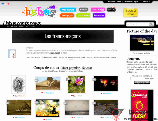 Hebus除了精美壁纸以外,还有一些GIF动画以及照片资源,对于设计者来说也是一个不错的淘宝地。而如果您足够细心,还能找到很养眼的图库。