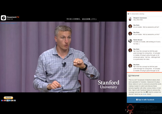 ClassRoomFM 是一个基于网络视频播放的平台,24小时不间断的直播来自美国斯坦福大学的各种知识视频,让世界各地的用户更好的接触最新的知识、理念和大学教学课程。