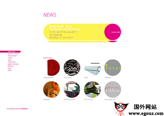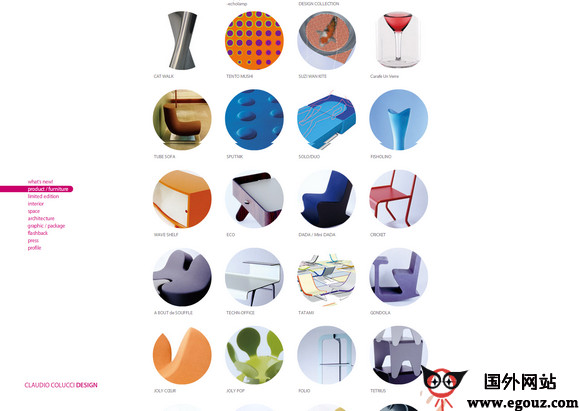 Colucci-design是创意家具收藏网站,站点收藏的全是经典的创意家具,采用动态的视觉效果来展示出来。
