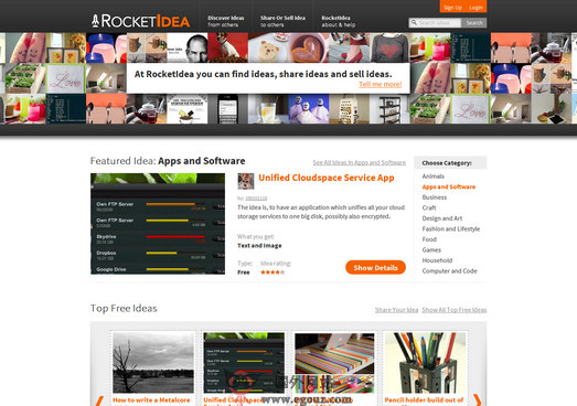 RocketIdea:创新灵感新思路是一个国际化的开放式创新思路拓展平台,用户可以在这里发布自己的创新理念,也可以在这里寻找拥有共同理念的群体。