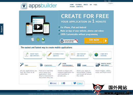 Apps-Builder:移动设备制定服务网是一个针对移动设备构建定制应用程序服务的网站。为用户提供了在Apple Store 和 Android Market上定制自定义移动应用程序的可能性。