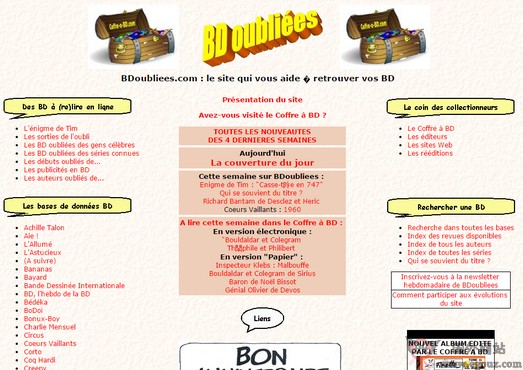 Bdoubliees 网站是一个致力于不出名的漫画分享的站点,可以帮助你找到你想要的漫画资源,由Bernard Coulange创办和维护,用户可以根据作者和漫画类型来查找想要的漫画资源。