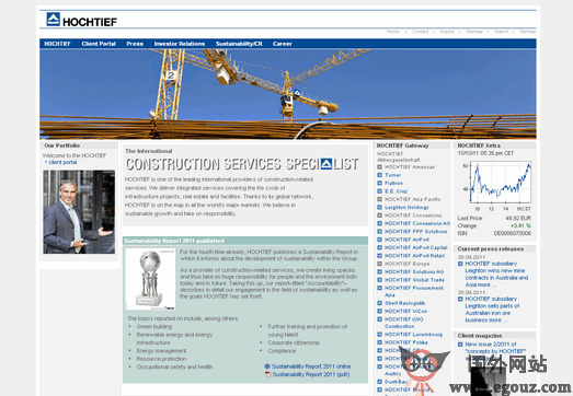 (Hochtief)是德国最大的建筑承包商,成立于1875年,总部位于德国埃森,主要业务包括设计咨询、投资开发、建筑施工、机场管理和维护等,截至2006年,豪赫蒂夫共5家法人子公司,总员工42000人。