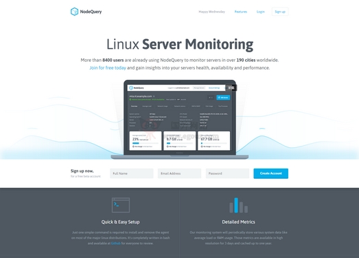 Node Query 是一个轻量级的Linux服务器监控服务系统,对于服务器健康服务来说该平台并不是一个大而全的产品,而是一个很精细的小众产品,目前免费账户可以提供10台机器的监控。