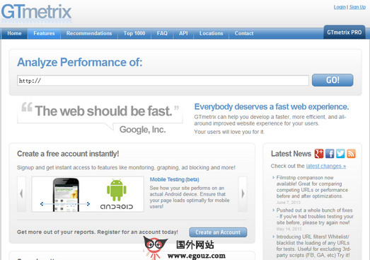 而GTmetrix则是一个免费的在线分析工具,可以分析你输入的指定网址,测试结束后,还会在结果页面显示分数,你也可以把这张“成绩单”保存成pdf格式,以便以后网站改进和优化的时候使用。