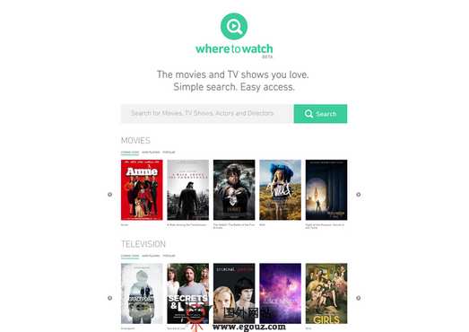 WheretoWatch:在线电影和电视是一个提供电影、电视节目、幕后拍摄、预告片内容的搜索引擎,通过简单的方式来找到你最喜爱的电影和电视节目,并根据你的地理位置来提供相关的影院信息、与电影相关的所有信息报道。