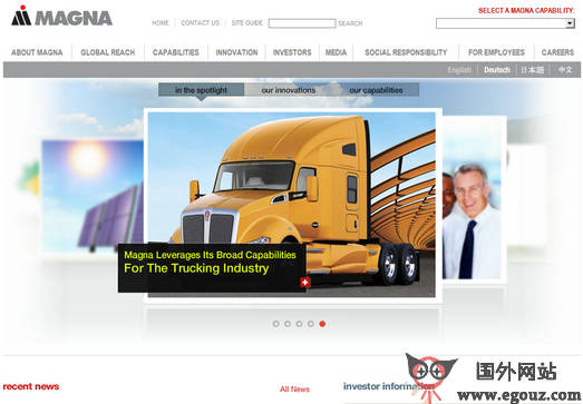 Magna拥有强大的产品范围,包括内饰系统,座椅系统,闭锁系统,金属车身和底盘系统,车镜系统,电子系统,塑料车身,车灯外饰系统,动力和驱动系统,顶蓬系统以及整车工程研发和总装。