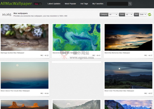 All Mac Wallpaper 网站是一个分享苹果笔记本电脑上使用的高清壁纸站点,目前收录了数万张多分辨率的高清壁纸,当用户方位该网站的时候会自动获取用户的电脑分辨率,如果你在使用苹果笔记本的话,不用发愁找不到合适的桌面壁纸了。
