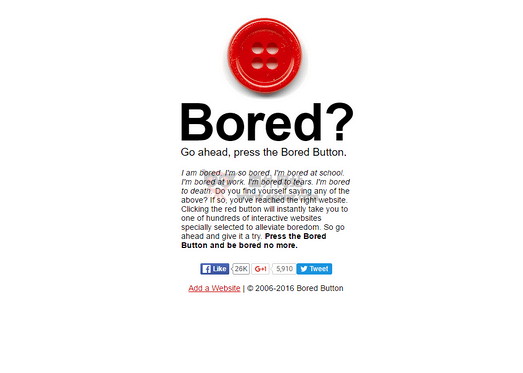 无聊的纽扣(Bored Button)是一个收录了数百个互动站点的随机工具,当你学习或者工作无聊的时候,尤其是闲的发慌,必须要给自己找点事情做,那么不妨试试这个网站,专治无聊。