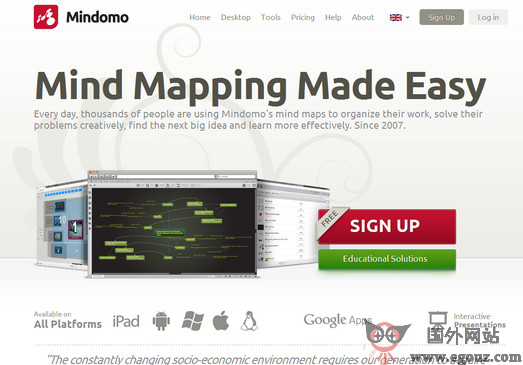 Mindomo是最好的思维导图工具之一,内置了很多共用的MindMapping 模版,避免了某些具有相同性质的Mapping从零做起的尴尬;该平台会给每一幅Mind-Mapping提供一款共有URL,也就是说,你创建的Mind-Mapping可以更多的人一起分享。当你使用它的网络在线版本的时候,感觉好像是在使用Microsoft Word,非常易用。