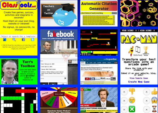 Class Tools 是由一位法国的教师罗素·塔尔创办的致力于分享教师课件的站点,虽然网站比较古老,但是对于教师来说还是非常实用的,目前网站提供20个免费小测验或图示、以及教育性游戏,你不需登入就可以免费使用并放在自己的网站上。
