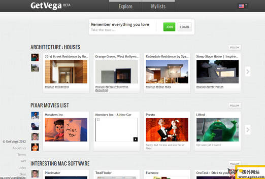 GetVega是完全以视觉内容为主的列表建立服务。其用户可在平台上进行商品比较,建立商品清单,并撰写商品评论。用户也可将它当作一个社交(或私人的)书签网站使用。