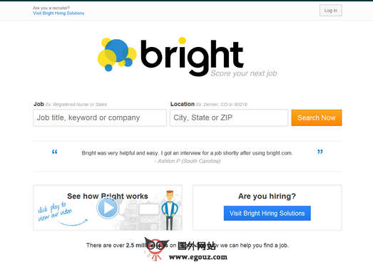 Bright:美国职位就业搜索引擎是一个基于数据分析的职位搜索服务,通过特殊算法(algorithmic approach)将求职者的请求与招聘岗位配对。针对每个岗位,Bright系统会根据求职者的自身条件进行打分,这样会让求职者明白他们在选择某一项岗位时的竞争优势有多大。 Bright公司目前由美国职业社交网站LinkedIn周四宣布出价1.2亿美元收购,对于LinkedIn而言,Bright的卖点在于其针对简历和招聘岗位进行匹配的软件。此外,Bright.com收集了大量关于求职市场的见解和数据,这对LinkedIn来说也具有一定的价值。 Bright公司始建于2011年2月,经过18个月的时间进行了大量的简历和职位之间的数据研究,通过研究280多万份简历和860万求职者的信息数据,招聘数百名和人力资源专业人士以及15个数据科学家和工程师来共同研发这项工程,最终使用数据分析来研发了Bright:平台,并于2012年6月推出。 Bright was started in February 2011. For 18 months we conducted what we believe to be the largest resume to job description study in history. The study included over 2.8 million resumes, 8.6 million job seekers, hundreds of recruiters and HR professionals, and a team of 15 data scientists and engineers. The data from this research endeavor was used to build the Bright Score, which launched on June 19, 2012. The Bright Score is able to look at hundreds of features on a resume in an instant, allowing us to analyze and score a holistic view of a candidate in the time it would take a human evaluator to absorb at most a couple of words. So we can immediately identify the candidates who are fit to move forward at a comprehensive level that could only be matched if a recruiter spent an hour on every single resume.