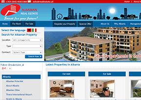 阿尔巴尼亚房地产网(Albania Real Estate)是阿尔巴尼亚最大的房地产公司的官方网站。网站拥有阿尔巴尼亚最全面的各类房产买卖和租赁信息,并附有图片、价格和其他说明,用户可以通过该网站留言或咨询。