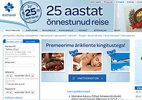 该网站为爱沙尼亚旅行社(Estravel)官方网站。爱沙尼亚旅行社是波罗的海诸国最大的旅行社之一,也是芬兰航空公司和美国运通公司的会员。该旅行社额提供爱沙尼亚、拉脱维亚、 立陶宛、俄国、芬兰、瑞典等国家的旅游服务,其业务包括酒店承租及预订、定制旅游项目、团体游、交通安排等。
