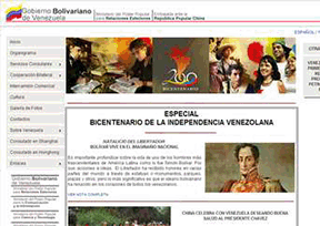 该网站为委内瑞拉驻华大使馆(Embassy of Venezuela in China)的官方网站,主要提供组织结构、领事事务、双边合作、贸易往来、文化、新闻、委内瑞拉介绍、总领事馆等。网站语言有中文、西班牙文、英文三种。