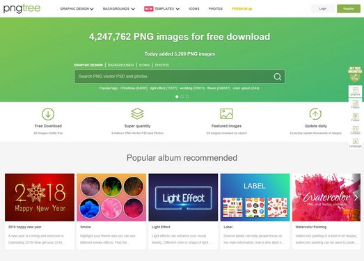 「Png Tree」是一个提供数百万PNG图片素材的站点,帮助设计师们找到最想要的设计素材,目前该网站所有的图片资源完全免费使用,并且每天都会更新数以千计的图片,没有可用素材的时候不妨来这里找找看。