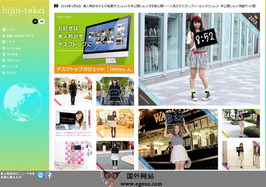 最初美女时钟网站是在日本兴起的,现在国内也有类似的网站了,而除了美女外,现在还出现一些帅哥、等主题的时计网站,相当的丰富,Bijin-tokei 上线短短一个月就引来了超过2亿4千万次的浏览!该网站每四分钟换一位,每人4个姿势,每天大概能看到360名美女。通过图片可以看到美女们的妆容、发型和服饰的流行情况,还有街头和天气,另外在Bijin-tokei美人时钟网站报时图片的右边还有关于这个美女的姓名、生日、住址、身高、三围、职业、血型以及最爱的网站等信息。