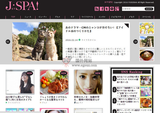 JoshiSpa 网站是日本的一家以女性生活为主题的站点,提倡女性精明生活;主要栏目有美食、爱情、生活方式、娱乐新闻、工作与创业、女性美容、女性新闻等。