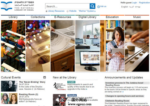 以色列国家图书馆是是希伯来大学的中央图书馆,它收集该国所有的出版物并发行书目。同时它还收集全部与以色列有关的世界各地的出版物,有选择地收集有关中东的出版物;并负责编辑以色列图书馆的期刊联合目录。