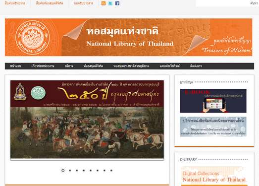 泰国国家图书馆(National Library of Thailand)是根据朱拉隆功国王即扎克里王朝的拉玛五世国王于1905年10月12日令由三所老皇室图书馆合并而成,,致力于收集和保存所有的知识资源,最大范围地向公众提供服务。