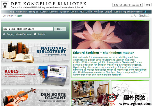KB.DK:丹麦皇家图书馆是一座为21世纪建造的图书馆。位于历史名城哥本哈根的Slotsholmen岛上,包括新建和改造两部分。其设计被认为是一个有别于传统图书馆架构的异类,因为它接纳了各种不同的文化机构。这种创新思想起源于1993年欧洲建筑竞赛的文化理念。