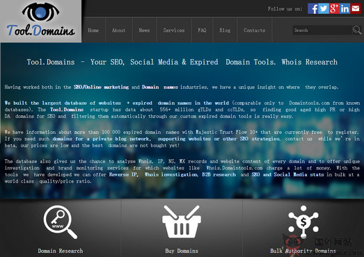 Tool.Domains 网站是一个提供免费搜索过期域名的在线工具,由Kalin Karakehayov 创办,凭借其6年的互联网优化和网络营销经验而创办的网站,针对开发人员和IT领域的网页优化人员找到顶级的域名而服务。