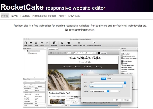 “RocketCake”是一款免费的网页编辑器,支持创建响应式网站,可视化的操作方式,适合于网页初学者,就算你不懂得HTML语法、CSS这些东西,也可以完成一个简易的响应式网页设计。
