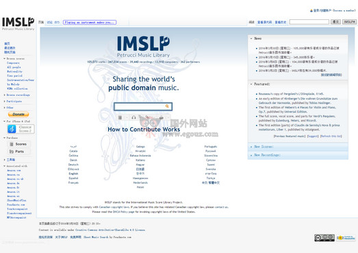 国际乐谱图书馆属于世界公共领域的乐谱数据库,目前收录了105,070 部作品、347,015 张乐谱、39,438 个录音录像制品、13,910 位作曲家、362 位演奏家。网站提供部分乐谱还有演奏示例,上面的谱子超级全,乐谱和演奏音频都能免费下载。