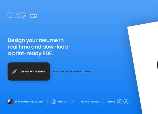 Online」是一款可以通过浏览器在线实时设计你想要的英文简历并支持下载打印成PDF的工具,100%免费无需注册就可使用,非常适合于在国外找工作需要简历的用户。