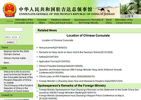 该网站为中国驻吉达总领事馆(CONSULATE-GENERAL OF CHINA IN JEDDAH)的官方网站,主要提供领事馆概况、最新动态、中国与沙特的最新情况、领区信息、中国概况、领事业务、中沙关系、时事新闻等。 网站语言有中文和英文两种版本。