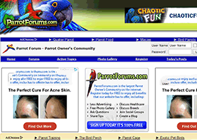 鹦鹉论坛(Parrot Forums)是美国一家与鹦鹉有关的兴趣爱好站点,于2005年1月创建,是一个致力于为鹦鹉爱好者提供交流平台的网站,主要介绍各种类型的鹦鹉,包括亚马逊鹦鹉、虎皮鹦鹉、刚果鹦鹉、灰鹦鹉、金刚鹦鹉等。