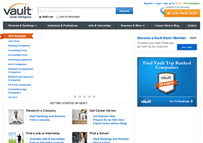 Vault是全球著名的职业指南网站,是由美国几名MBA创建的,主要为用户提供职业介绍、求职培训、求职指南等。该网站每年都会组织专家对各个行业的全球名企、企业高管、 企业员工等进行调查,以便为用户提供详尽的第一手行业报告、企业及企业文化以及各行业的就业指南。