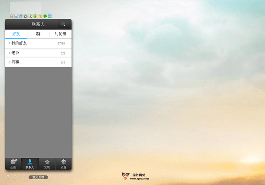点击好友、群头像后,在右侧会弹出一个单独的聊天窗口,由于是透明界面的缘故,给人的整体感觉比较舒服。同时,在点击聊天窗口上方的“选项”键,就能够直接查看群成员、聊天记录等信息,基本能够满足简单的聊天需要。