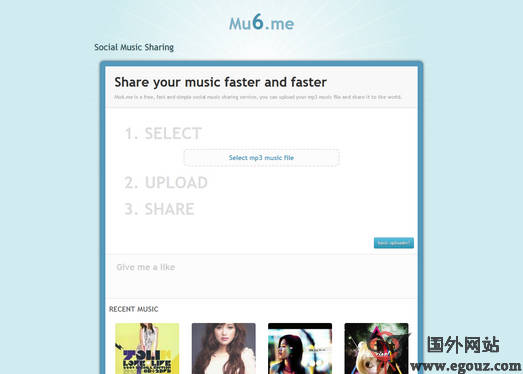 -MU6.ME:免费音乐上传分享平台是一个免费,快速,简单易用的音乐分享空间,可以上传你的音乐文件(MP3格式),并分享至全世界。