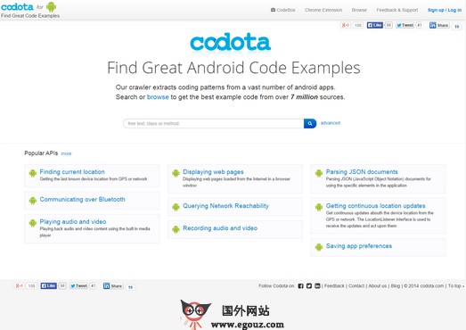 Codota:基于安卓代码是有以色列理工大学毕业生制造的一个可以在网上发现的代码案例,帮助开发人员可以节省开发者大量的工作时间,通过专业的代码搜索引擎可以更方便的查询想要的代码。