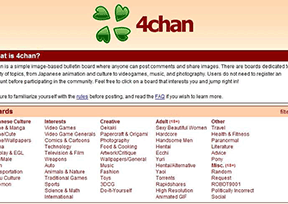 4chan是美国著名的匿名实时消息论坛,是最简陋也是最有创意的网站,是由克里斯•普尔创建的。4chan以不时引起不同的重大事件(包括起底、网上欺凌等)而驰名国内外,也因此被称为“外国高登”。