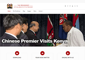 该网站为肯尼亚总统府(The Official Website of Kenya)的官方网站,主要提供肯尼亚国家概况、政府机构设置、历任总统简介、出版物、内阁简介、时事新闻、最新动态等。网站语言为英语。肯尼亚...