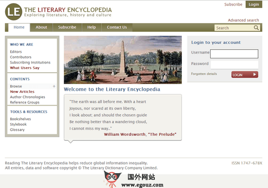 Litencyc:英语文学百科全书是一个全新的文学著作参考百科全书网站,由世界各地的大学教师共同创办维护的,提供包括传记、文学作品、文学术语等文化知识。...