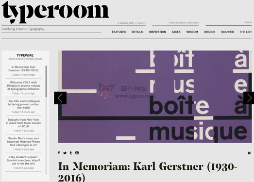 印刷品排版作品展示网(Typophile Generation)是一个致力于展示杰出印刷品排版的站点,展示了关于以信件形式的美学故事,并采访了来自全球各地的平面设计师,精心挑选出富有灵感思维的作品组...