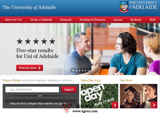 Adelaide:阿德雷德大学是澳大利亚历史上的第三所大学,成立于1874年,位于澳大利亚南部阿德莱德市;自建校以来阿德莱德大学一直位居澳大利亚顶尖大学之列,曾培养出5个诺贝尔奖和108个罗德奖...