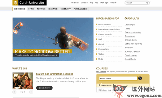 Curtin:科廷科技大学是澳大利亚科廷科技大学官方网站,curtin是一所公认的具有活力和创新精神的澳洲大学,在国际化教育方面处于领导地位。...