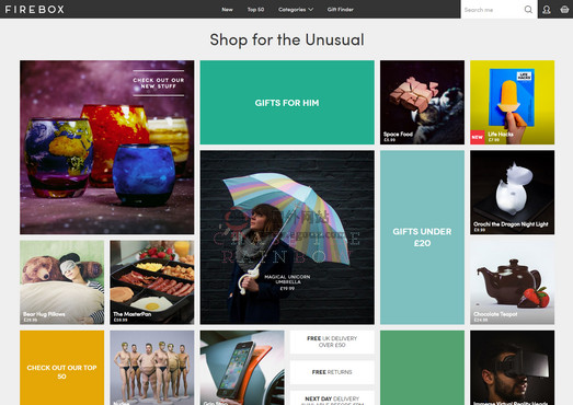 FireBox 是英国的一家集创意、个性化的知名在线购物网站,专门销售各种有趣的特色产品,主要涵盖了创意礼品、家具饰品、美食甜点、书籍杂志、智能VR等高科技产品。...