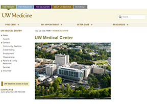 华盛顿大学医学中心(University of Washington Medical Center)是美国著名医院,创建于1959年,位于西雅图,有床位450张(2015年数据),为 华盛顿大学 教学医院。华盛顿大学医学中心在康复治疗、癌...