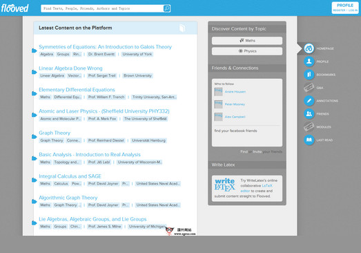 Flooved:社会化学术教学社区是一个社会化的教育应用平台,通过社会化协作和开放式的学术分享方式为世界各地的学生、学者提供权威的教育材料,用户可以在这里找到学习资料、历届试题、学...