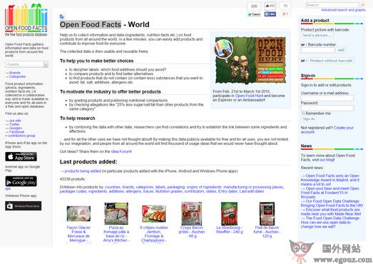 Open Food Facts 网站是一个收集全世界的食品信息和数据(包括配料、营养成分等),只需短短几分钟你就可以轻松获取海量的食品信息资料,这也是信息开源的平台,用户可以添加相关食品的数据,...