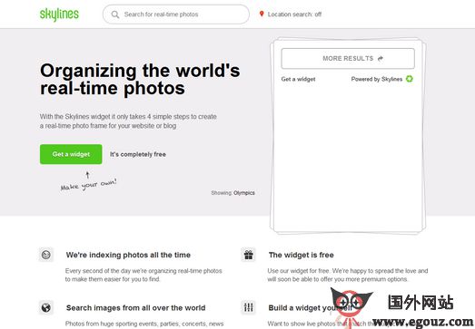 SkyLines:基于搜索兴趣图片搜索引擎是一个基于用户发现感兴趣的图片搜索引擎,让用户看到自己真正感兴趣的图片,该平台支持手机版和网页版。...