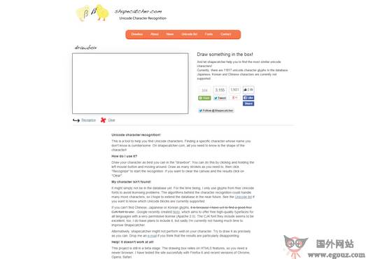 Shapecatcher:在线画图搜索特殊符号工具是一个让你用画图的方式来搜索你无法形容的特殊符号,很多时候我们会遇到一些特殊的服务号,有些符号看过后也只是能画出来,但是无法用语言去形容...